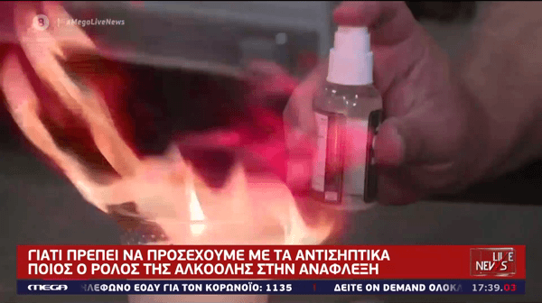 Η ένδειξή για το εύφλεκτο των αντισηπτικών που υπάρχει ακόμα και σε μαντηλάκια φαίνεται πως δεν είναι υπερβολική.