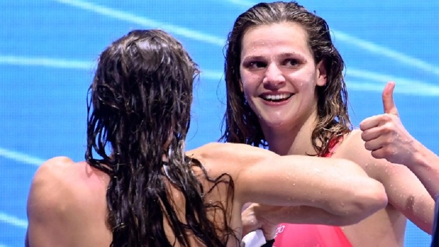 Δεν μπορούσε να κρύψει τον ενθουσιασμό της η Άννα Ντουντουνάκη μετά το χρυσό μετάλλιο στα 100μ. πεταλούδα του Ευρωπαϊκού Πρωταθλήματος κολύμβησης της Βουδαπέστης.