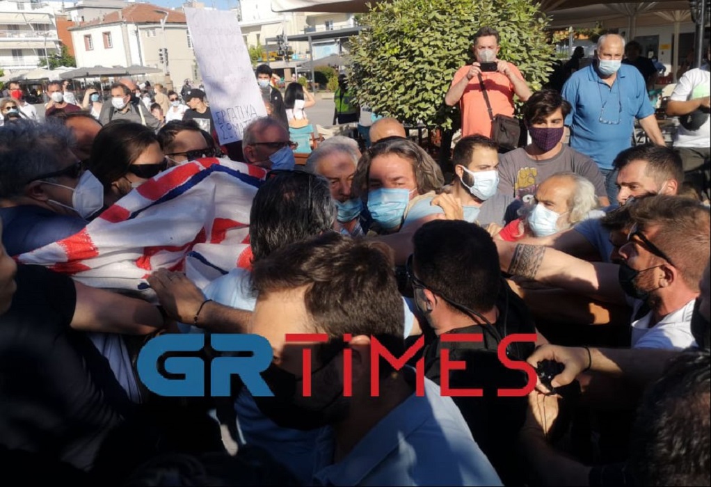 Μικροεπεισόδια ανάμεσα σε μέλη του ΠΑΜΕ και στις αστυνομικές δυνάμειες σημειώθηκαν κατά την αποχώρηση του πρωθυπουργού από την Καλαμαριά.