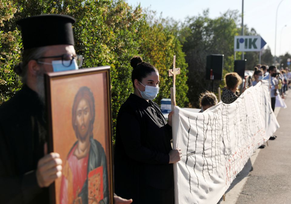 Μεταξύ των διαμαρτυρομένων βρίσκονταν και τρεις ιερείς. Δημιούργησαν ανθρώπινη αλυσίδα στο πεζοδρόμιο της Λεωφόρου ΡΙΚ, απέναντι από το ίδρυμα.