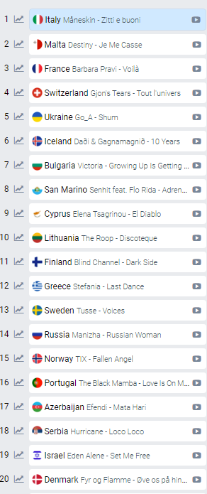 Παρ΄ όλα αυτά δεν βγαίνει πρώτη, αλλά τέταρτη ή πέμπτη στα στοιχήματα μεταξύ των χωρών του ημιτελικού.