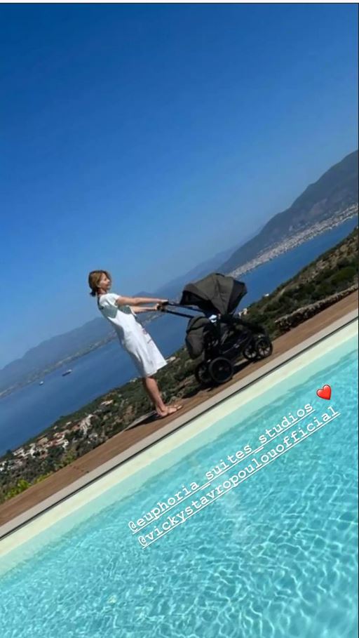 Η ευτυχισμένη μανούλα επέλεξε για την πρώτη της εκδρομή τη Μεσσηνιακή Μάνη και συγκεκριμένα το ξενοδοχείο που διατηρεί η καλή της φίλη, Βίκυ Σταυροπούλου, με τον Χρήστο Χατζηπαναγιώτη.