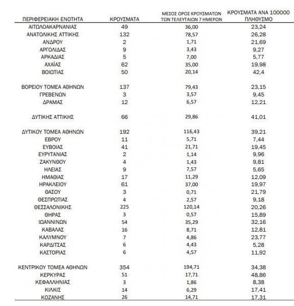 Αναλυτικότερα τα κρούσματα στις περιφερειακές ενότητες που ανήκουν στην Αττική:
