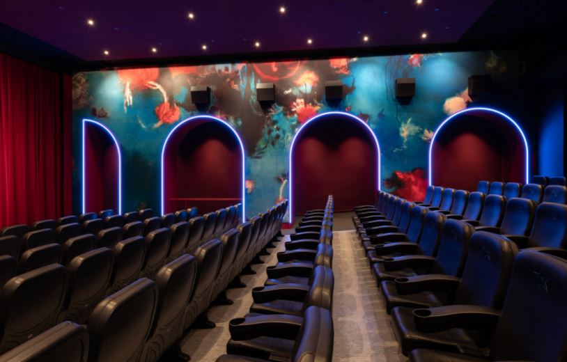 Καθοριστική για την επιλογή των χρωμάτων ήταν η ύπαρξη συγκεκριμένου πίνακα στον χώρο εισόδου του με εμβαδόν 435 τετραγωνικών μέτρων κινηματογράφου.