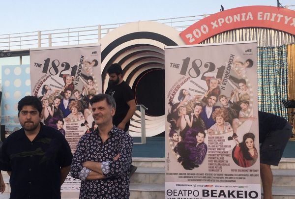 Φοίβος Δεληβοριάς και Δημήτρης Καραντζάς μας υποδέχτηκαν στο Βεάκειο για να παρουσιάσουν ένα μικρό δείγμα από την επιθεώρηση «1821» που ετοίμασαν με αφορμή την επέτειο των 200 χρόνων από την Ελληνική Επανάσταση.