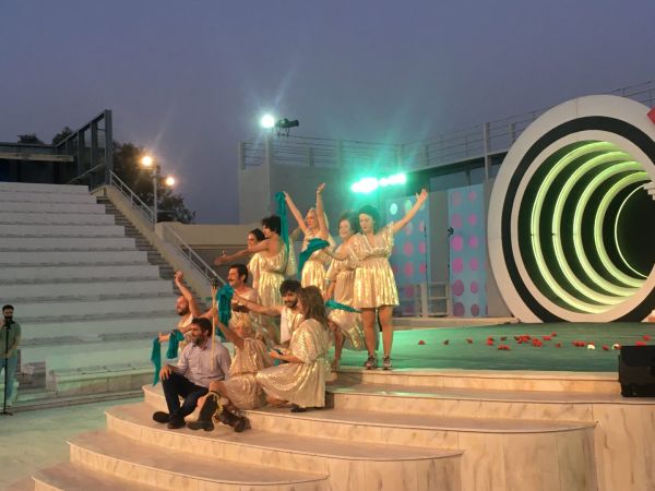 Πριν ο θίασος ανέβει στη σκηνή και παίξει ένα μέρος από την έναρξη του προγράμματος ο Δεληβοριάς και ο Καταντζάς εξήγησαν τον τρόπο που επέλεξαν να προσεγγίσουν το συγκεκριμένο θέμα και την επιλογή του επιθεωρησιακού πλαισίου.