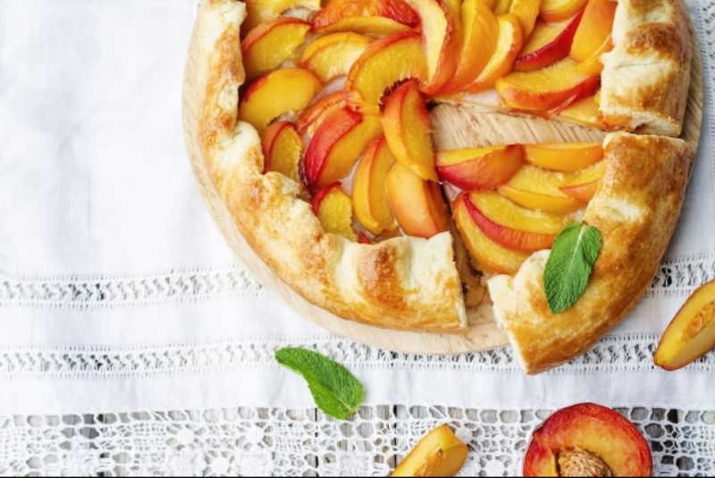 Προσθέτουμε το μείγμα με τα ροδάκινα ή τα μήλα σε χαμηλή φωτιά, ανακατεύοντας ανά τακτά χρονικά διαστήματα για περίπου 10 -15 λεπτά.