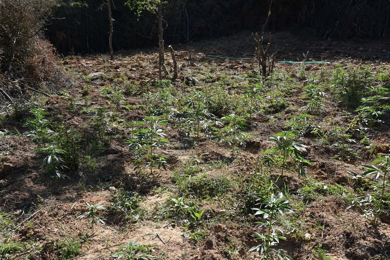 Η έκταση της παράνομης δραστηριότητας αποτυπώνεται από τα ευρήματα της αστυνομίας. Εκτός από τα χασισόδεντρα και την κάνναβη άνω των 2 κιλών, κατασχέθηκαν ένα πολεμικό τυφέκιο, δύο πιστόλια και πάνω από 290 φυσίγγια, όπως επίσης ειδικός εξοπλισμός για την εκχέρσωση της δασικής έκτασης.