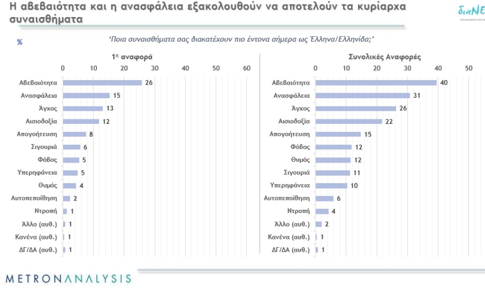 Η «αβεβαιότητα» και η « ανασφάλεια» εξακολουθούν να είναι τα πιο έντονα συναισθήματα που οι ερωτηθέντες δήλωσαν πως τους διακατέχουν, μια και εξακολουθούν να φοβούνται τον Covid-19.