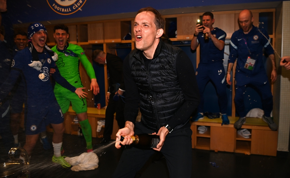 Ο Τούχελ πανηγύρισε έξαλλα στα αποδυτήρια του Ντραγκάο τη στέψη της Τσέλσι ως πρωταθλήτριας Ευρώπης και στο ξέσπασμά του έλουσε τους παίκτες του με σαμπάνια.