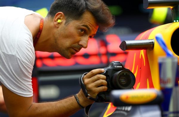 «Θυμάμαι ότι σταμάτησα τον Φέτελ φεύγοντας από το γκαράζ και του ζήτησα να φορέσει πάλι την μπαλακλάβα, έτσι ονομάζεται αυτή η προστατευτική «κάλτσα» αν θέλετε, που φοράνε οι οδηγοί κάτω από το κράνος και τους προστατεύει από τυχόν εγκαύματα. Ο Φέτελ σταμάτησε και γέλασε επειδή νόμιζε ότι κάνω πλάκα. Εγώ του εξήγησα ότι δεν κάνω πλάκα και αν μπορεί να το κάνει, την φόρεσε λοιπόν και εγώ τράβηξα 4-5 κοντινές λήψεις στις οποίες ήταν χαμογελαστός και έκανε πλακίτσες. Κατεβάζω εγώ την κάμερα λοιπόν και του ζητάω αν μπορεί να μείνει λίγο σοβαρός χωρίς χαμόγελο. Δεν το περίμενε και η έκφραση του προσώπου άλλαξε αμέσως. Έχω τραβήξει άλλη μια λήψη όπου βγάζει την μπαλακλάβα και φεύγει. Όπως είδα μετέπειτα, η εικόνα αυτή ήταν και η μοναδική που δεν ήταν θολή», θυμάται ο φωτογράφος.