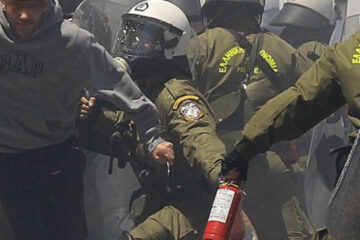 Ο Γιάννης δήλωσε ότι χτυπήθηκε με πυροσβεστήρα από αστυνομικό των ΜΑΤ στο κεφάλι.