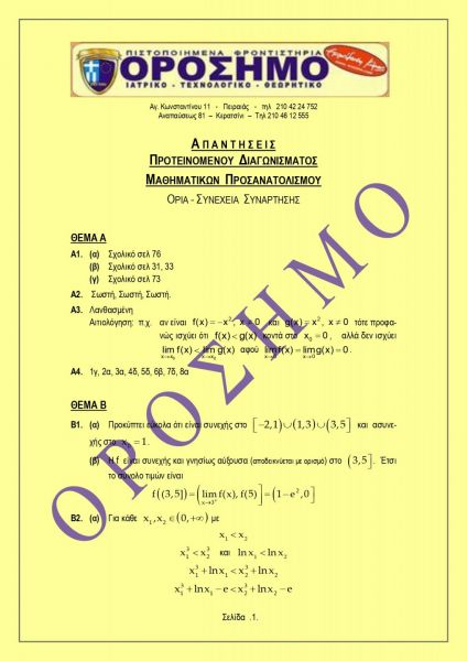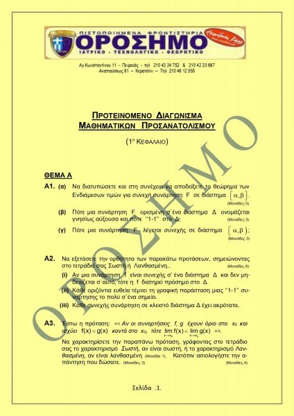 Παρακάτω μπορείτε να δείτε προτεινόμενο διαγώνισμα για το μάθημα των Μαθηματικών Προσανατολισμού.
