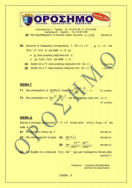 Πανελλαδικές 2021: Προτεινόμενο διαγώνισμα Μαθηματικών
