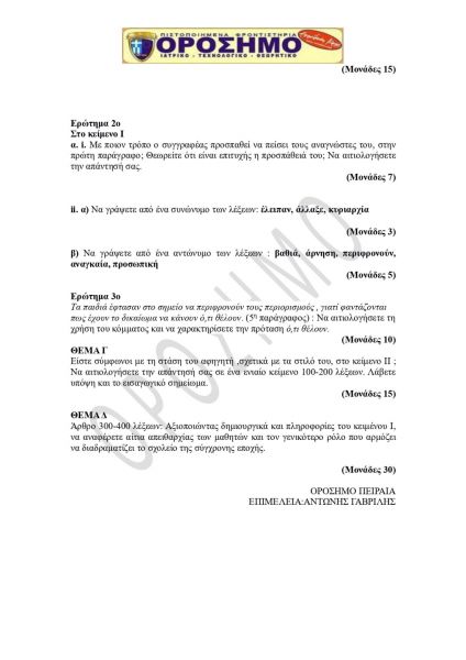 Παρακάτω μπορείτε να δείτε προτεινόμενο θέμα για το μάθημα της Έκθεση για τα ΓΕΛ.