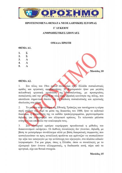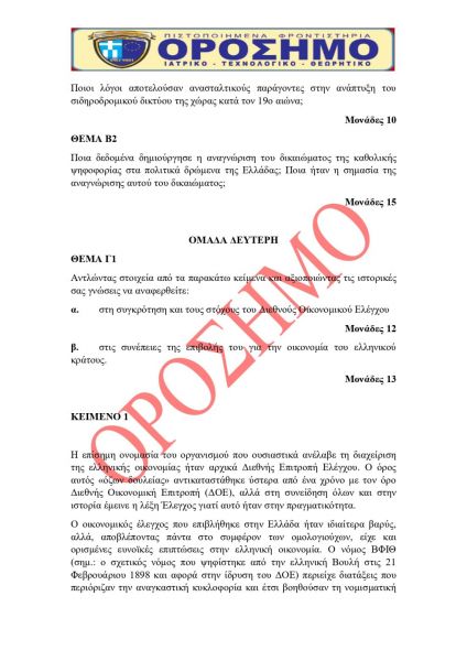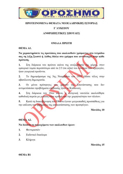 Παρακάτω μπορείτε να δείτε προτεινόμενο θέμα για το μάθημα της Ιστορίας.