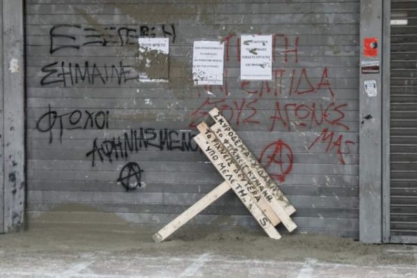 Σωματεία οικοδόμων πραγματοποίησαν συγκέντρωση έξω από το υπουργείο όπου έριξαν μπετό στην είσοδο του κτηρίου.