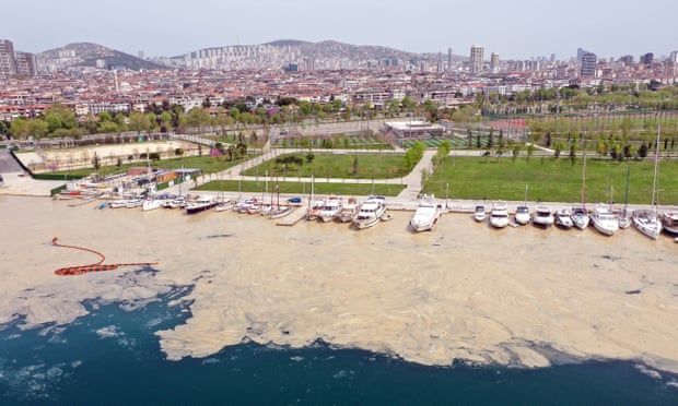 Ένα αχανές στρώμα καφετιάς γλίτσας συσσωρεύεται εδώ και μήνες στις ακτές της Θάλασσας του Μαρμαρά, ανάμεσα στο Αιγαίο και τη Μαύρη Θάλασσα, φέρνοντας απορία στους περαστικούς και απόγνωση στους επαγγελματίες αλιείς. Οι επιστήμονες, από την πλευρά τους, προειδοποιούν ότι το φαινόμενο θα εμφανίζεται όλο και συχνότερα καθώς η κλιματική αλλαγή θερμαίνει τα νερά.