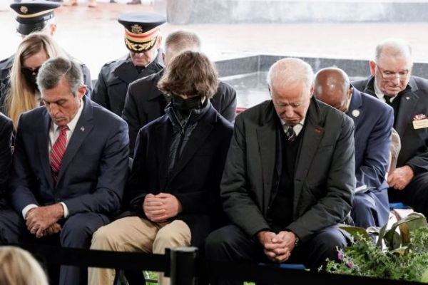 Μαζί ήταν η κόρη του Άσλεϊ Μπάιντεν, καθώς και ο γιος του Μπο, Χάντερ, ο οποίος ήταν δίπλα στο παππού του και στο Πάρκο Μνήμης Βετεράνων (Veterans Memorial Park )για την Ημέρα Μνήμης των πεσόντων για την πατρίδα στρατιωτών.