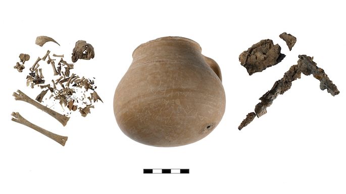 Κοντά στο αγγείο βρέθηκαν υπολείμματα φωτιάς με οστά ζώων, οι οποίες ενδεχομένως αύξαναν τη δύναμη της κατάρας.