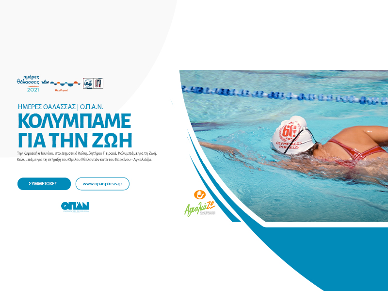 Με τη συμμετοχή των πρωταθλητριών Ευρώπης, της γυναικείας ομάδας πόλο του Ολυμπιακού, που είναι οι πρέσβειρες της φετινής διοργάνωσης, του Ολυμπιονίκη Σπύρου Γιαννιώτη, ο οποίος θα κολυμπήσει για 2η χρονιά και πλήθους διακεκριμένων αθλητών του υγρού στίβου, θα πραγματοποιηθεί στον Πειραιά το «Κολυμπάμε για τη ζωή», συνεχίζοντας την ανθρώπινη αλυσίδα αγάπης και προσφοράς που δημιούργησαν πέρυσι εκατοντάδες αθλητές και απλοί πολίτες.