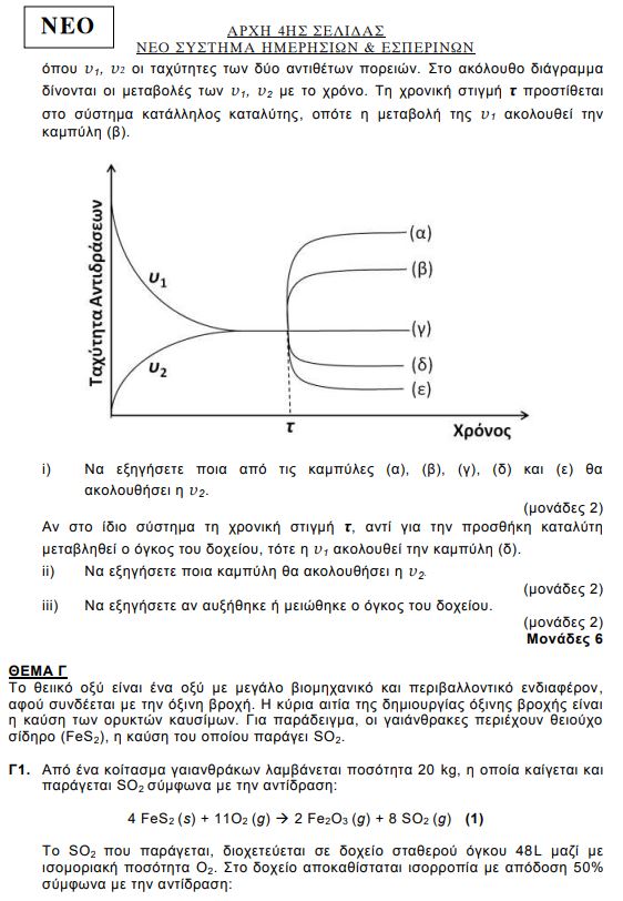 Παρακάτω μπορείτε να δείτε το περσινό θέμα (2020) για τη Χημεία Προσανατολισμού με το νέο σύστημα.