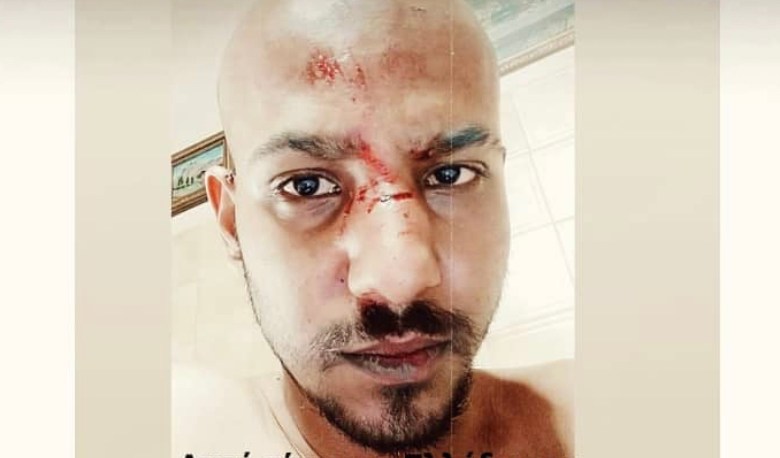 Το θύμα ανήρτησε στη συνέχεια μια φωτογραφία του, με μώλωπες και αμυχές στο πρόσωπο, στην οποία στηλιτεύει τους ανθρώπους, 6 με 9 τον αριθμό, που του επιτέθηκαν.
