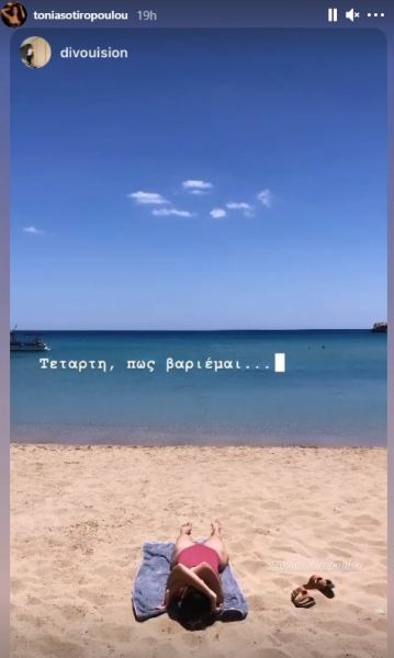 Η Τόνια απολαμβάνει ξένοιαστες και χαλαρές στιγμές ενώ έκανε και τις πρώτες της βουτιές στη θάλασσα. Φόρεσε το κόκκινο ολόσωμο μαγιό της, χαλάρωσε κάτω από τον ήλιο και κολύμπησε στα καταγάλανα νερά της θάλασσας. Μάλιστα μοιράστηκε στο Instagram και μια selfie με τον αγαπημένο της, Κωστή Μαραβέγια, γράφοντας : «Θα μου δώσεις ένα αυτόγραφο;».