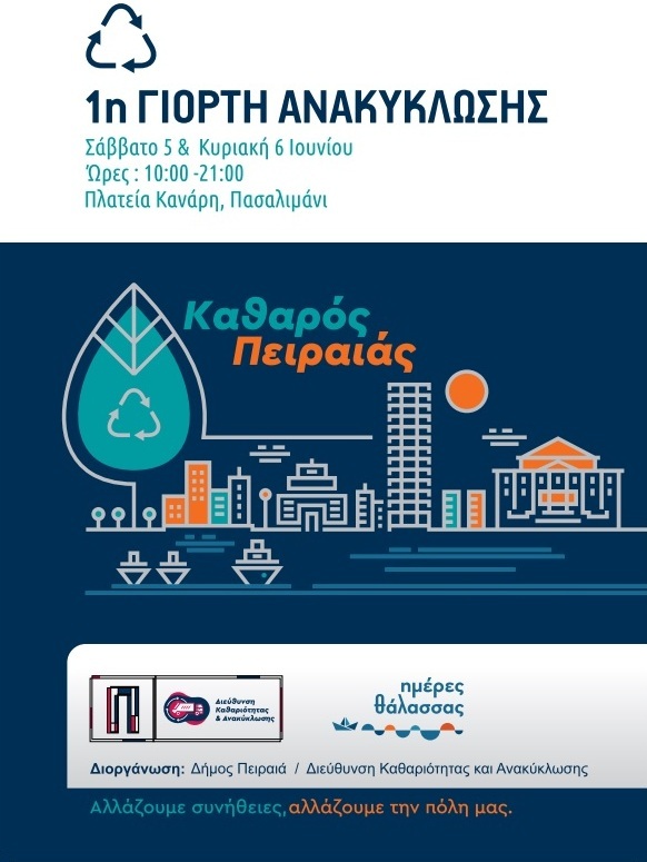 Την 1η Γιορτή Ανακύκλωσης διοργανώνει η Διεύθυνση Καθαριότητας και Ανακύκλωσης του Δήμου Πειραιά, στο πλαίσιο των «Ημερών Θάλασσας 2021».