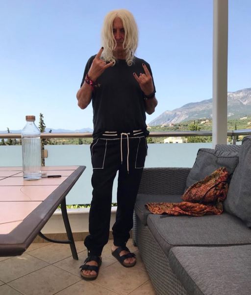 Ο παππούς Νίκος Καρβέλας φόρεσε τα… μαύρα ρούχα που λανσάρει στην Αμερική η κόρη του και πόζαρε με το δικό του μοναδικό ροκ στιλ!