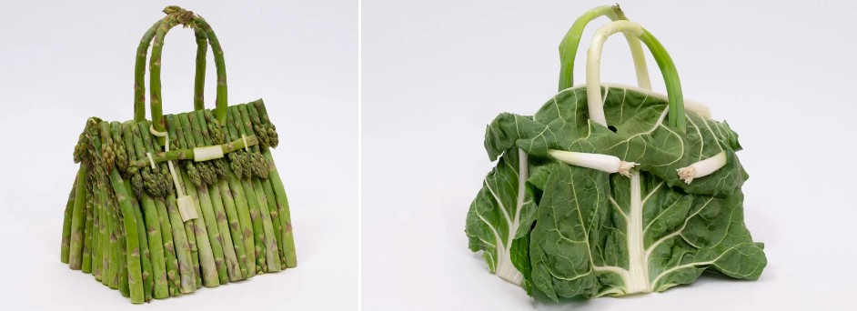 Αυτές οι τσάντες Birkin κατασκευάζονται χρησιμοποιώντας πραγματικά λαχανικά από τον σχεδιαστή Ben Denzer ως μέρος ενός προγράμματος κοινωνικών μέσων με τη γαλλική ετικέτα πολυτελείας. Εδώ, οι τσάντες Hermès έχουν μια αναζωογονητική αναπαράσταση, τόσο κυριολεκτικά όσο και μεταφορικά, χρησιμοποιώντας σπαράγγια, λάχανο και αγγούρια.