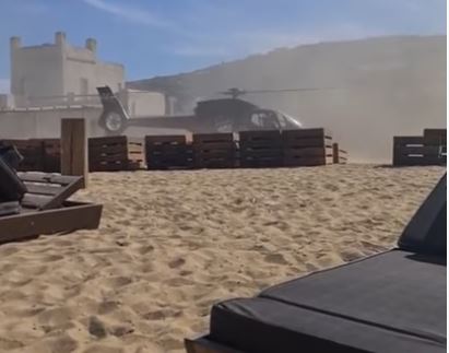 Η προσγείωση του ελικοπτέρου μέσα σε beach bar της παραλίας καταγράφηκε σε βίντεο και ήδη οι εικόνες κάνουν τον γύρο του διαδικτύου.