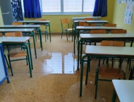 Οι τάξεις του τελευταίου ορόφου πλημμύρισαν ενώ προβλήματα υπήρξαν και σε κάποιες τάξεις του πρώτου ορόφου αλλά και σε χώρους του υπογείου.