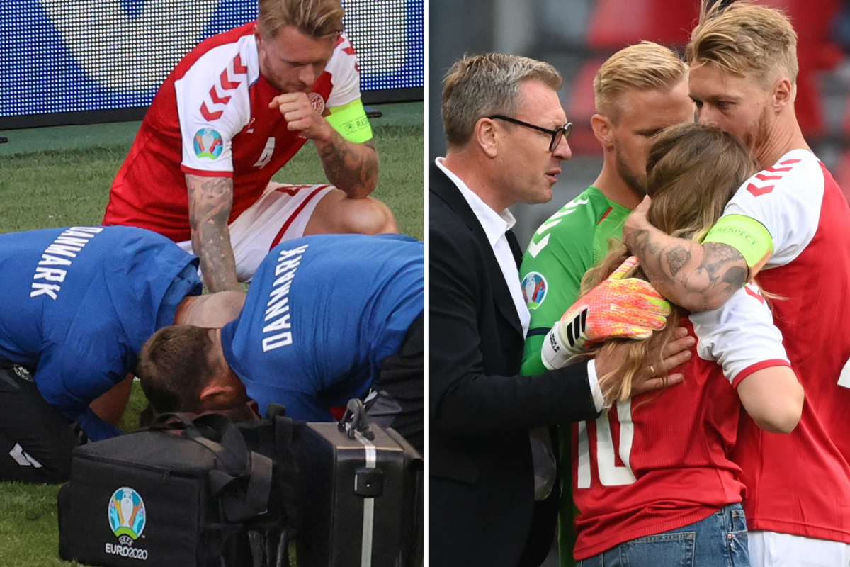 Στη συνέχεια, ο Κιάερ παραίνεσε τους δακρυσμένους συμπαίκτες του να σχηματίσουν ένα ανθρώπινο τείχος γύρω από τον Έρικσεν, έτσι ώστε να προστατέψουν την ιδιωτικότητά του σε αυτή τη δύσκολη στιγμή.