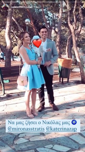 Τη φωτογραφία δημοσίευσε στο instagram ο επιχειρηματίας, Σάκης Νταντούλας. O Μύρωνας Στρατής και η Κατερίνα Ζαρπάδα ποζάρουν αγκαλιά με τον Νικόλα τους.