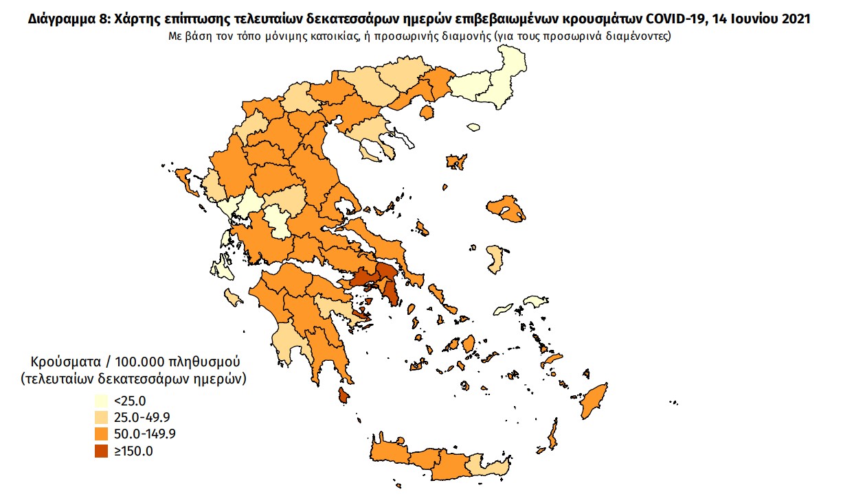 Με βάση τα επιβεβαιωμένα κρούσματα των τελευταίων 7 ημερών, 29 θεωρούνται σχετιζόμενα με ταξίδι από το εξωτερικό και 1.081 είναι σχετιζόμενα με ήδη γνωστό κρούσμα.