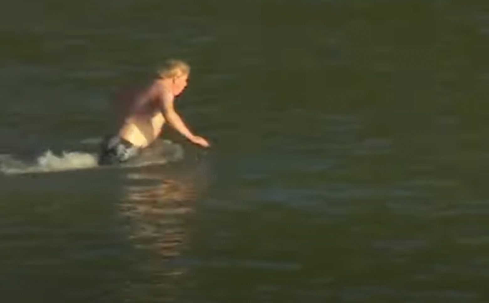 Στη συνέχεια βούτηξε στην θάλασσα, μιμούμενος τον τρόπο που βουτούσε ο… Μιτς Μπιουκάνον στο Baywatch, κάτι που σχολιάστηκε.. δεόντως από τα ΜΜΕ της χώρας.
