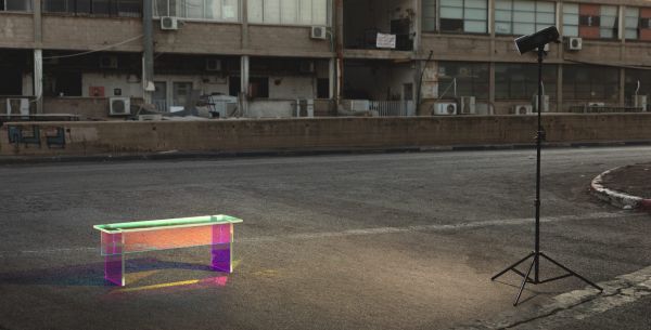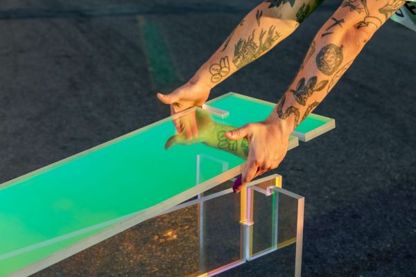 Όμως, η περιορισμένη έκδοση F04 Bench είναι κάτι περισσότερο από ένα έπιπλο: αποτελεί κατά κάποιον τρόπο μια οπτική ψευδαίσθηση. Με μήκος περίπου πέντε μέτρα, το αντικείμενο είναι κατασκευασμένο από ημιδιαφανή τζάμια από επεξεργασμένο πλεξιγκλάς (ένα υλικό που αντανακλά και διαθλά το περιβάλλον φως) έτσι ώστε να εκπέμπει ένα φάσμα τεχνικών χρωμάτων.