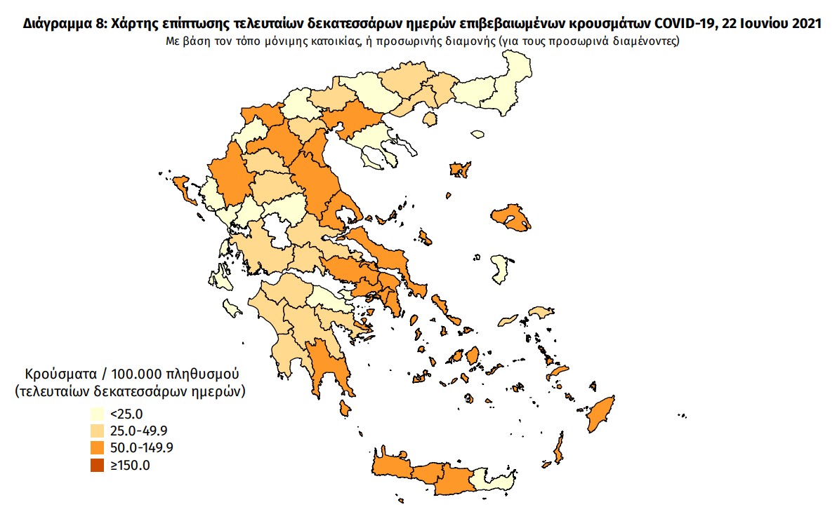 Η επιδημιολογική κατάσταση της Ελλάδας την Τρίτη 22 Ιουνίου