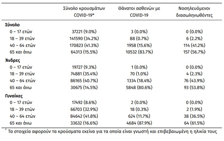 Η διάμεση ηλικία των κρουσμάτων είναι 43 έτη (εύρος 0.2 έως 106 έτη), ενώ η διάμεση ηλικία των θανόντων είναι 78 έτη (εύρος 0.2 έως 106 έτη).