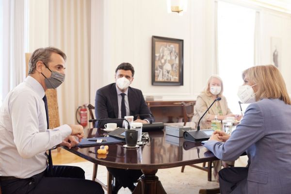 Την εκτίμηση ότι πλησιάζουμε στο τέλος της υγειονομικής κρίσης εξέφρασε ο Κυριάκος Μητσοτάκης κατά τη συνάντηση που είχε στο μέγαρο Μαξίμου με την με την Ευρωπαία Επίτροπο για θέματα Υγείας και Ασφάλειας Τροφίμων, Στέλλα Κυριακίδου.