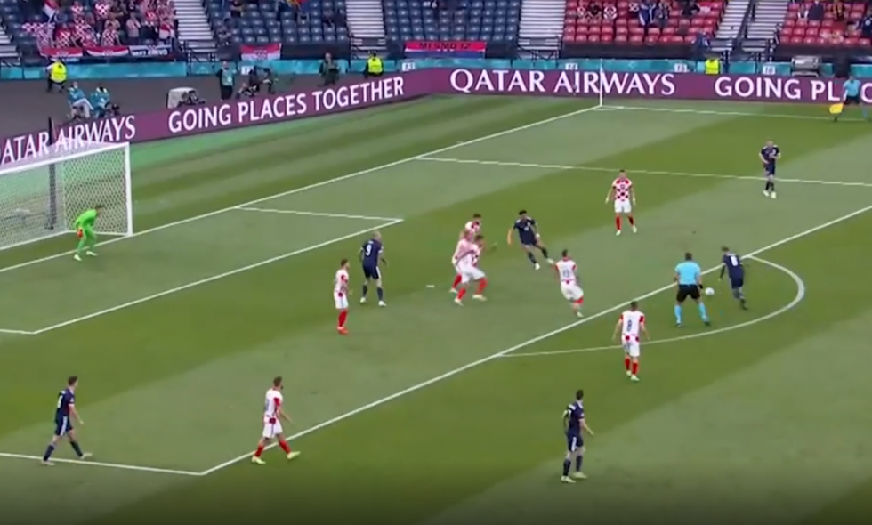 Ύστερα από μια φάση διαρκείας στα καρέ της Κροατίας και ένα απίθανο σουτ του άσου της Σέλτικ, η Σκωτία ισοφάρισε σε 1-1 στο 42ο λεπτό.