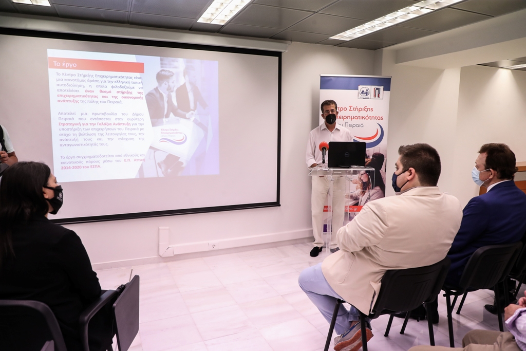 Η παρουσίαση της δράσης «Ενίσχυση μικρών και πολύ μικρών Επιχειρήσεων που επλήγησαν από την πανδημία Covid-19 στον Δήμο Πειραιά» πραγματοποιήθηκε σε εκπροσώπους των παραγωγικών φορέων της πόλης, στο Κέντρο Στήριξης Επιχειρηματικότητας του Δήμου Πειραιά, παρουσία λίγων συμμετεχόντων, στο πλαίσιο τήρησης των μέτρων ασφαλείας κατά του COVID – 19.