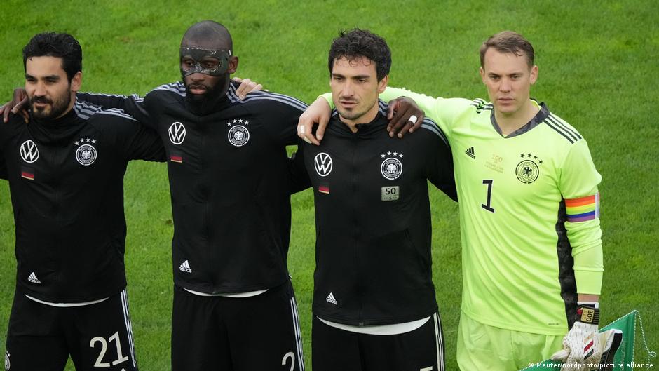 Σήμερα Τετάρτη έπεται το επόμενο κεφάλαιο. Στο Μόναχο, όπου διεξάγονται τα ματς της γερμανικής ομάδας, έχει ξεκινήσει εντατικός διάλογος εάν η Allianz Arena, όπου η Γερμανία θα παίξει κατά της Ουγγαρίας για τον έκτο όμιλο, φωτιστεί με τα χρώματα της κοινότητας ΛΟΑΤΚΙ.