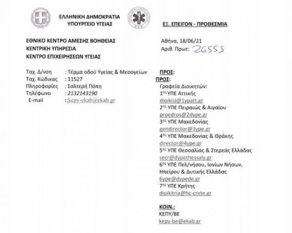 Λόγω των λιγοστών λειτουργούντων κλινών ΜΕΘ, το ΕΚΑΒ- ΚΕΠΥ πήρε σπόφαση η καλοκαιρινή συντήρηση, απολύμανση τους να διαρκέσει 2 έως 4 ημέρες και όχι δύο εβδομάδες όπως όλα τα προηγούμενα χρόνια.