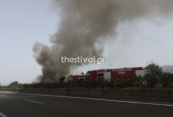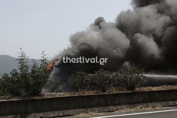 Βέροια: Νταλίκα τυλίχθηκε στις φλόγες στην Εγνατία Οδό