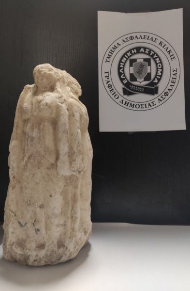 Τρεις άνδρες, δύο 56χρονοι και ένας 35χρονος, συνελήφθησαν από αστυνομικούς του Τμήματος Ασφαλείας Κιλκίς διότι επιχείρησαν να πουλήσουν αρχαίο αγαλματίδιο έναντι 40.000 ευρώ. Σύμφωνα με την πρώτη αρχαιολογική εκτίμηση, το αγαλματίδιο εμπίπτει στις προστατευτικές διατάξεις της νομοθεσίας και απεικονίζει τη θεότητα της ελληνικής μυθολογίας Τρίμορφη Εκάτη ενώ χρονολογείται τον 2ο – 3ο αιώνα μ.Χ.