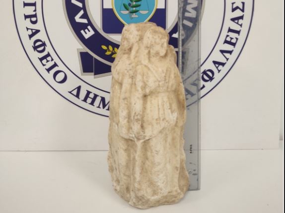 Ειδικότερα, μετά από οργανωμένη αστυνομική επιχείρηση, εντοπίστηκαν οι δύο 56χρονοι το απόγευμα της 25ης Ιουνίου σε περιοχή της δυτικής Θεσσαλονίκης να προσπαθούν να πουλήσουν το αρχαίο αγαλματίδιο, με ύψος 33 εκατοστών, πλάτος 16 εκατοστών και βάρους 10 κιλών περίπου.