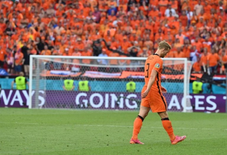 Με δέκα παίκτες έμεινε η Ολλανδία στην αναμέτρηση με την Τσεχία, μετά την αποβολή του Ματία Ντε Λιχτ, επειδή βρήκε τη μπάλα με το χέρι.