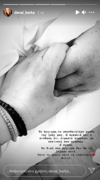 Την απώλεια ενός πολύ αγαπημένου της προσώπου βιώνει η Δανάη Μπάρκα. Η παρουσιάστρια του Mega, ανάρτησε στο Insagram μια φωτογραφία στην οποία τη βλέπουμε να κρατά ένα χέρι μεγαλύτερου σε ηλικία ατόμου και έγραψε: